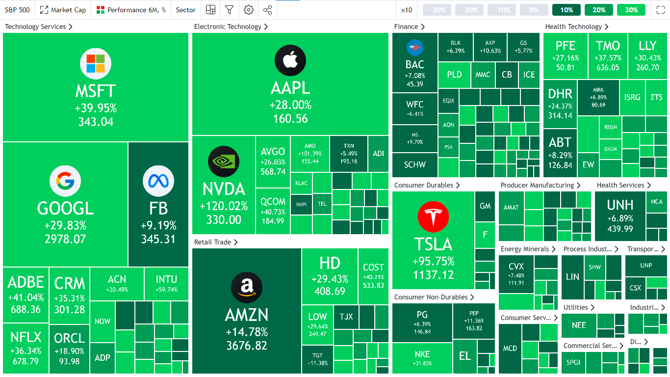 是的,近6個月主要上漲的是大型科技股及金融股。