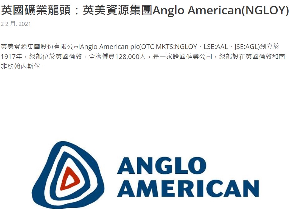 NGLOY 英美資源集團:英國礦業龍頭