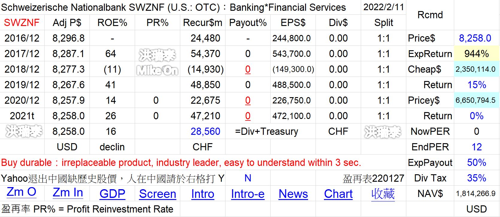 謝謝chris9895桑及阿宏桑提醒,我買瑞士央行因為他很便宜,而且又是國家級的公司,我們已經採取分散投資,它也只佔持股不到2%,已大幅降低風險,我想長期持有這一家公司。